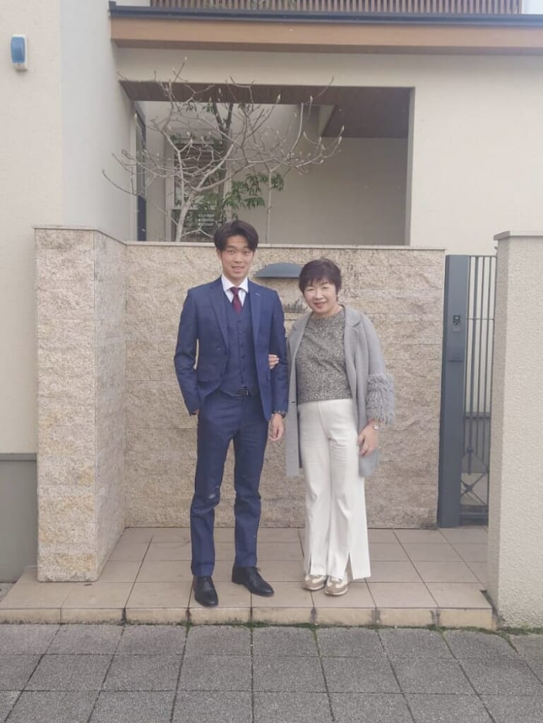 こちらの新成人は、弊社のメインバンクの元担当さんの息子さん。現在は京都の大学に通うバスケットボール好きな好青年。